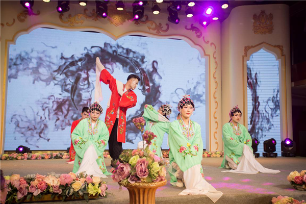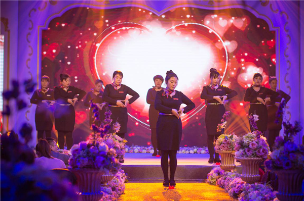 總結大會結束后,喜事匯婚慶的督導服務禮儀展示拉開了文藝聯(lián)歡晚會的序幕。
